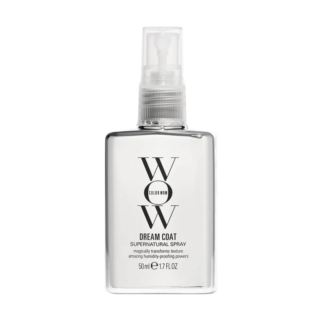 ColorWow Dream Coat Supernatural Spray (50 ml) — A breakthrough anti-humidity, frizz-fighting treatment that gives you sleek, glossy hair for up to 5 days. Designed to lock out humidity and smooth strands like a raincoat for your hair, this lightweight spray leaves locks shinier, sleeker, and more manageable without any residue.