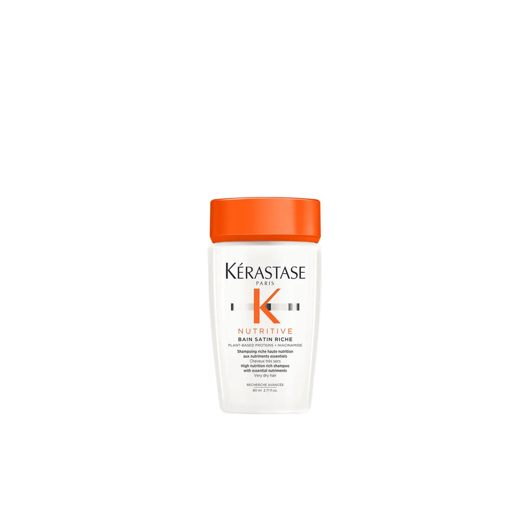 Kérastase Nutritive Bain Satin (80 ml) — A deeply nourishing shampoo crafted for very dry, sensitized hair. This ultra-nourishing formula: